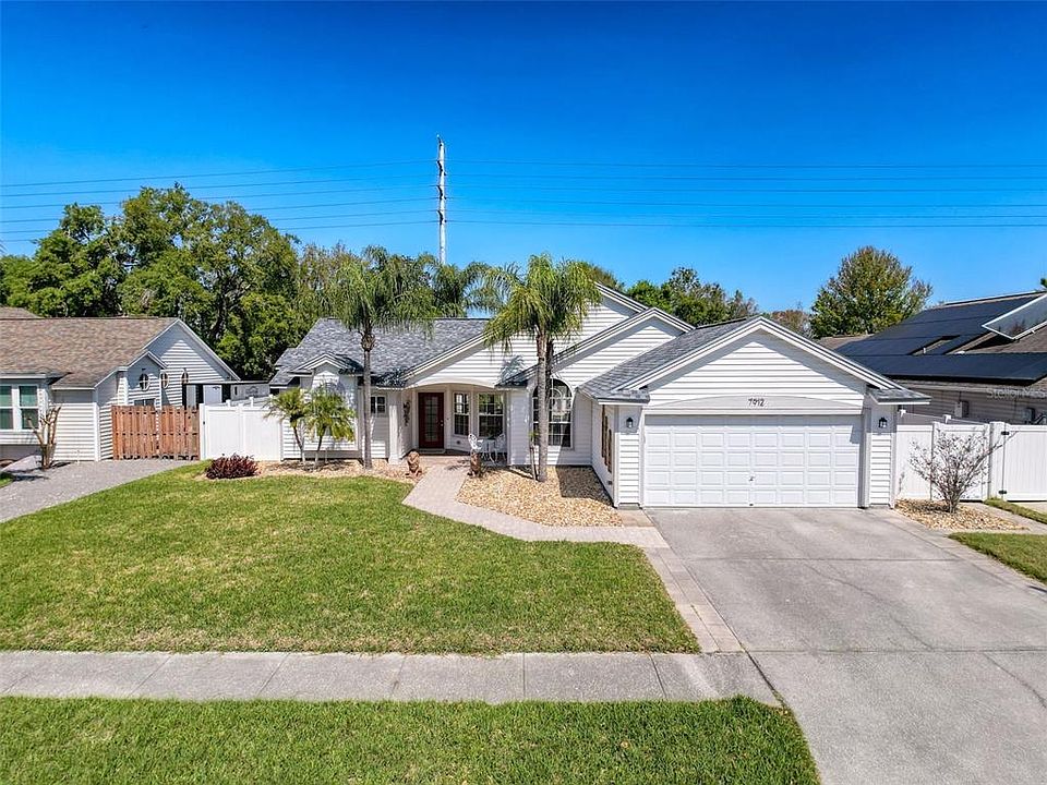 Welcome to 7912 Trail Run Loop located in the community of Mill Run in New Port Richey. This updated 3-bed/2-bath/2-car garage home boasts a resort style pool area that is complete with your own Tikki Bar w/electricity on one end and a covered gazebo on the other. This home is perfect for entertaining and hosting large gatherings. The current owners have done numerous upgrades to the home including a new water heater this year, replacing AC system in 2024, remodeled the kitchen, primary bathroom, and installed new flooring throughout the home in 2019. They also replaced the fencing and upgraded the landscaping in the front and back yards. As you enter the home, there is the living and dining room combination as well as the primary suite. As you make you way across the living room to the right there is the kitchen, complete with a prep island and breakfast nook. The kitchen looks out to the family room that provides access to the pool area and the 2 other bedrooms, guest bathroom and laundry room complete with cabinets and a laundry sink that was also added by the owners. This home is truly in move in condition and is ready to start a new chapter with a new owner. You could not ask for a better location and are minutes away from Downtown New Port Richey which has undergone numerous changes revitalizing the look and feel of Downtown with a variety of restaurants and shops. To the south you have the Trinity area, which is also full of amenities, Starkey Park has numerous trails for biking, jogging as well as horseback riding. This is truly an opportunity you will not want to miss out on.