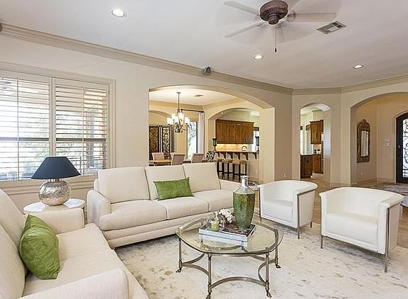 Modern luxury and thoughtful design & solid construction by Austin custom builder Russell Eppright. This 5 bedroom 4 full bath home in the Canyon Rim subdivision of Northwest Hills has one bedroom & full bath downstairs. 9', 10' and 13' ceilings, 3 covered porches--master, front door and living room--shaded yard on the culdesac and negative-edge pool are perfect for relaxing in the hills morning, noon and sunset. Exemplary AISD schools:Doss, Murchison and Anderson (IB).