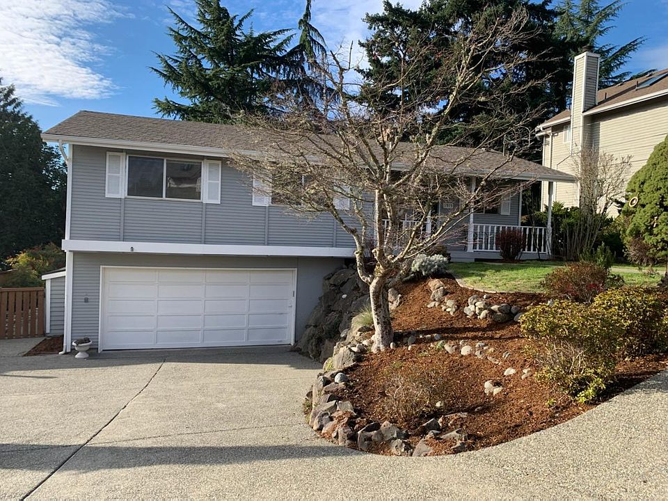 Hardwood floors, large windows, great natural light and a big, private back yard! 3 bedrooms plus a large office/den and a rec room/playroom. Formal Living and Dining Rooms with a glass slider to the large, sunny deck overlooking the lush and private back yard. Primary and 2 other generous bedrooms on the main level with hardwood floors, soft and neutral paint colors and functional floorplan. Lower level recently updated with fresh paint and new flooring. Laundry/mudroom off the garage and backyard. No carpet! 2-car garage with storage space. Landscaping included in rent. 12 month lease, Case by case on small pet with extra deposit. Our lease, online application/screening thru Accusearch paid for by tenant, each occupant over 17 must fill out their own.