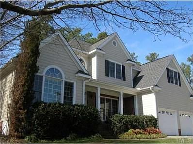 Sunsets are amazing from porch! Sparkling Crystal Chandelier in DR, new carpet/padding in custom blt home in Fairlake! MB on 1st Fl w/whirlpool tub, lrg WIC, dual sinks, Ceiling Fan. Lg Bonus Rm can be used as 4th BR with closet, Woodblinds thru-out. Lg deck overlooking two-tiered landscaped backyard w/hardwood trees. Custom Drapes. Featured in Wake Weekly Front Porch Paper! Sunlit home!