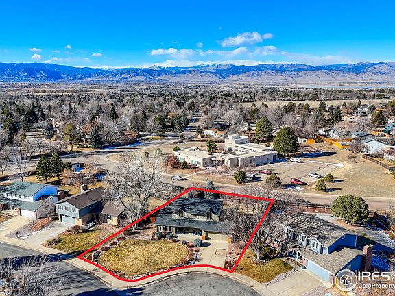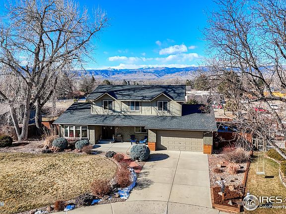 Overnight notice to show. If you enjoy the perfect blend of indoor and outdoor living, this home delivers the best of both worlds. Tucked away on a peaceful cul-de-sac, this classic two-story home provides generous space for five bedrooms and captivates with stunning west-facing views. Upon entering, you'll be welcomed by a charming living room with a cozy bay window that flows seamlessly into a spacious, separate dining room. Wood floors on main and new solid core doors throughout the home. An additional fifth bedroom or office on the main floor offers flexibility to suit your needs. The kitchen features granite countertops, stainless steel appliances, and a separate breakfast area. The kitchen flows into a large family room, enhanced by a custom-crafted stone gas fireplace with a barnwood beam mantle and is EPA-certified for use, even on no-burn days. The newer Pella sliding door off the kitchen and living area opens to an irresistible outdoor entertaining space, grounded by a custom-built arbor that beautifully frames the snow-capped Rocky Mountains. Stone retaining walls, stamped concrete, fire-pit area, custom sunshade, fans, heaters, custom bar, television, LED lights and professional landscaping provide an enviable combination of qualities that make living here enjoyable and special. The upper level contains 4 carpeted bedrooms including the primary suite with its private 3/4 bathroom and double sinks. A second full bathroom with double sinks serves the three additional bedrooms on the upper floor. A quiet and efficient whole-house fan or air conditioning system keeps the home cool and comfortable. Large unfinished basement, with lots of storage, radon mitigation, laundry tub and large freezer. 2 car attached garage. Welcome home!