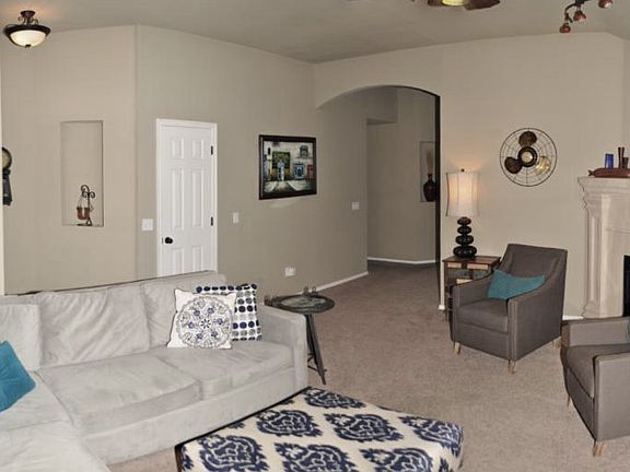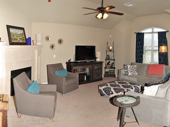 If you want a breathtaking 3 bedroom, 2 bath home that shows like a model home, this is it! Close to all amenities! You will not find a kitchen like this in this price point! The large, fenced backyard offers a storage shed and upscale landscaping and no neighbors behind. Your spacious living room shines with updated lighting, corner fireplace and decorative cutouts! The open concept kitchen hosts tiled floors, high ceilings, staggered cabinets, extended breakfast bar, and designated pantry. Oversized, this master bedroom easily holds a king size suite and a sitting room and a master bath with dual sinks. 2 additional bedrooms are serviced by a lovely guest bath with extended cabinets. Enjoy peaceful evenings from your spacious, fenced backyard with fire pit and storage shed! Additional features include new home 10-year limited warranty through RWC, Energy Star Home – 30% more efficient than homes built by standard codes, moisture barrier house wrap, safety features: tornado straps, anchor bolts, and OSB exterior wall, and high efficiency 13 SEER Lennox electric central air conditioning.