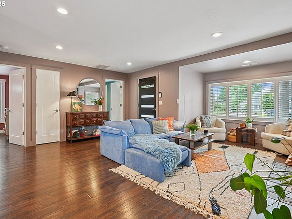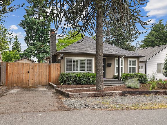 Beautifully remodeled ranch with modern open layout and an incredible backyard oasis. Taken down to the studs in 2016, this light-filled home is fully updated and move-in ready, featuring quartz countertops, plantation shutters, a fireplace, and central AC. The extra-large fenced and gated yard is perfect for spring, with a spacious deck, lush landscaping, garden beds, and a newer hot tub. A heated detached bonus room offers endless options—studio, office, or guest space. R2.5 zoning adds future development potential. A rare blend of style, comfort, and versatility! [Home Energy Score = 5. HES Report at https://rpt.greenbuildingregistry.com/hes/OR10192511]