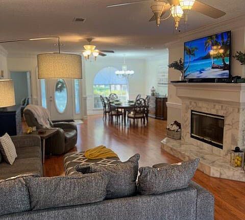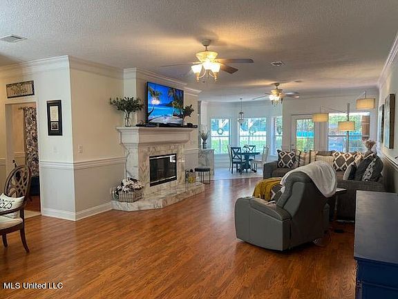 A MUST SEE in Diamondhead, MS! It is a beautifully kept 4 bedroom/2.5 bathroom SFR home that sits in a peaceful cul de sac away from traffic. It has a 2 car garage along with a separate golf cart entrance, and a huge fenced in backyard for kids to play and ample room for pets to roam. This 2,404 square foot house has a spacious open floor plan to allow for great time or easy entertaining. As you step inside, you are greeted by a warm and welcoming atmosphere. The interior of this home features a thoughtful and functional layout, making it perfect for household of all sizes. It has crown molding throughout, a double sided fireplace, and marbled countertops in the kitchen.The living spaces within this home are both spacious and versatile, allowing for endless opportunities for customization and personalization. Whether you envision a cozy FR for quality time with loved ones or a formal sitting area for entertaining guests, this property has the flexibility to meet your needs. Natural light floods the rooms, creating a bright and airy ambiance throughout.The kitchen is a focal point of this home, offering a perfect blend of functionality and style. It boasts ample counter space, modern appliances, and an abundance of storage options, making meal preparation an enjoyable experience. The adjacent dining area provides a delightful space for gathering and sharing meals with friends.The master suite featuring a spacious layout, offers privacy and tranquility, featuring a nice large walk-in closet, a jetted jacuzzi tub to relax in and a ''She'' room attached which is the perfect space for relaxation after a long day. Outdoor living is equally desirable in this property. The lot offers plenty of room for outdoor activities, gardening, or simply enjoying the beautiful Mississippi weather. Whether you prefer hosting barbecues on the patio or watching football games on the outdoor TV, this home has it all.Situated in the desirable community of Diamondhead, this property benefits from its proximity to amenities such as boating, golf courses, swimming pools, tennis courts, playgrounds, schools, shopping and entertainment. With its prime location and well-maintained interior, 7914 Apaki Pl presents an excellent opportunity for those seeking a comfortable and convenient lifestyle. All appliances, washer/dryer, furniture and TV's are included in this home purchase. Don't miss this opportunity!