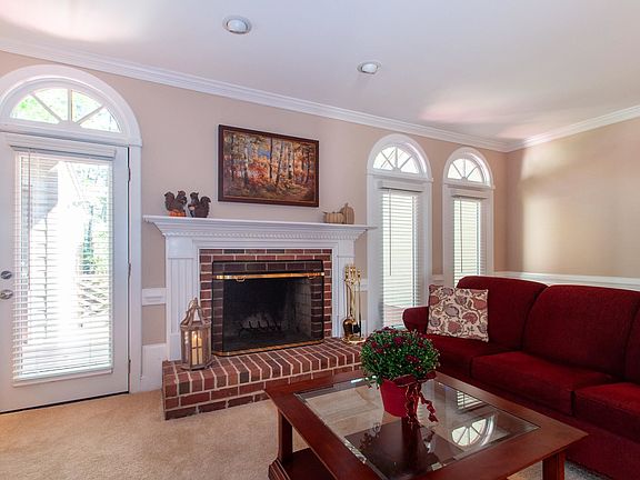 Welcome to your beautiful 3-bdrm townhome. This home boasts stunning granite countertops in the kitchen & master bath, dual vanity & updated tile in the master bath. Step inside & immediately notice the brand-new high-end windows & screens, along with an aluminum door in the back, complemented by sidelights-installed in 2021. You'll appreciate the updated carpet downstairs & hallway. 9’ ceilings and crown molding downstairs. The spacious master includes a closet w/built-in shelves & walk-in closet in the master bath, ensuring ample space for your belongings. This home offers an abundance of storage space-including a walk-up 500-sq-ft unfinished 3rd flr, perfect for customizing to your needs & large storage area on the 1st flr under the stairs. Step outside onto the freshly stained deck & enjoy a private backyard surrounded by lush trees, creating a tranquil oasis right at home. Exterior painted in the summer of 2023. 2 assigned parking spaces out front. It's just a short drive from shopping, RDU, downtown Raleigh & major highways. Don't miss the opportunity to make this meticulously maintained townhome your own!