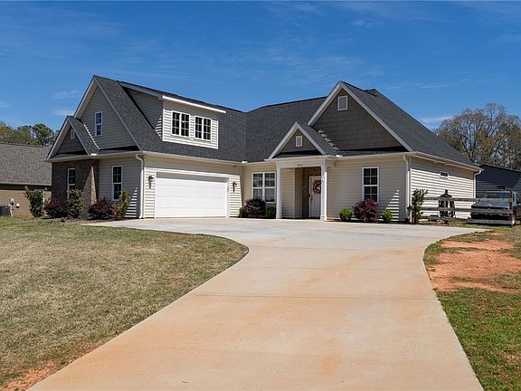 Welcome to this charming, nearly-new Craftsman-style home, nestled on over half an acre of land, offering the perfect blend of modern comforts and timeless appeal. With 4 spacious bedrooms, including a full bonus room that can easily be transformed into a home office, playroom, or media space, this home is designed to accommodate a variety of lifestyles. The open floor plan enhances the sense of space, featuring a bright and airy living area with vaulted ceilings that create an inviting atmosphere. The heart of the home is the beautifully designed kitchen, which flows seamlessly into the dining and living areas, making it perfect for both everyday living and entertaining. Step outside to the covered back patio, ideal for enjoying outdoor meals, relaxing, or hosting gatherings in privacy, thanks to the expansive backyard. Plus, with no HOA, you have the freedom to make this property truly your own. Enjoy the best of both worlds with the convenience of being 10 minutes to Downtown Liberty, 10 minutes to Pickens, 20 minutes to Clemson, and less than 30 minutes to Downtown Greenville. This home offers the perfect combination of style, space, and location, don't miss out on the opportunity to make it yours!