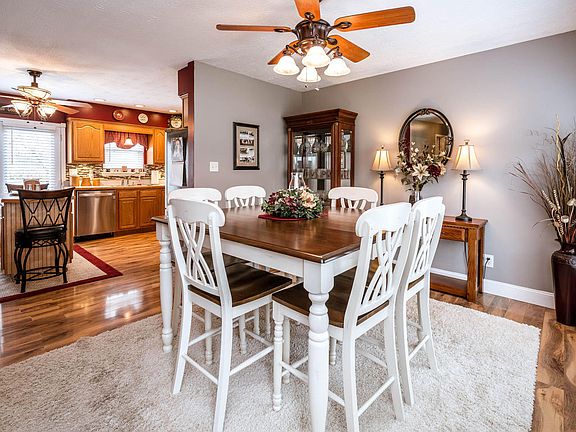 Welcome Home to this Charming All Brick Walk Out Ranch featuring 3 Bedrooms w/2 Full Baths & a Finished Walkout Basement w/Full Privacy Fenced Yard that backs to Acreage with Mature Trees ~ Updated Eat-In Kitchen offers Newer Cabinetry, Recessed Lights & All Stainless Steel Appliances to Remain: Stove, Refrigerator, Built-in Dishwasher & Microwave ~ Kitchen Walks Out to a Huge Deck ~ Living Room that is now being used as a Dining Area features a Large Picture Window ~ Master Bedroom will accommodate Large Furniture ~ Updated Full Bath w/Ceramic Tile Flooring & Light Fixtures ~ Finished Walk Out Basement offers a Large Family Room w/Wood Burning Fireplace, Full Bath & Recreational Area complete with a Custom Bar ~ French Doors lead out to the Brick Patio ~ Extra Gravel Parking