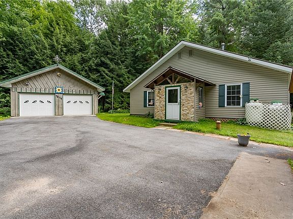 This beautifully maintained home is located in a secluded and wooded 3.6 acres. The property includes a 2-stall garage, an additional one stall garage, additional shed, as well as a wood storage shed. The home features large glass windows throughout which allows for plenty of natural light. There is a wood stove centrally located to create a warm cozy night during the winter. The home has a full basement which could be turned into additional living space.