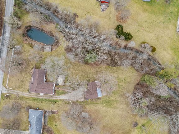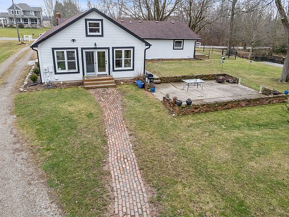 Walk into this rustic contemporary ranch, and the first thing you will see are views! Sitting on over 2 park-like acres, this home offers amazing views of the changing seasons, blooming perennials and nature scenes that include birds, turtles, squirrels, owls and more! The surrounding trees offer a beautiful-buffer to the world around you! Extra large view windows, hardwood floors, custom milled woodwork and vaulted ceilings will give you a contemporary Brown County feel. Primary bedroom opens up to a private patio overlooking the stocked pond and a fully fenced area for pets. Dog door also installed! Many updates include a new kitchen with all new cabinets, roll out pantry and coffee station. The Primary bath updates include a large walk-in spa-like shower and separate soaking tub. Newer, fully serviced HVAC, gutters, fresh interior and exterior paint, new custom blinds, new septic and newly renovated crawl space make this move in ready. Seller added 30amp plugin in garage for visiting RVs! The detached 2+ car finished garage has a full workshop and upstairs attic storage. The attached game room is completely finished, water, sink, heat and is ready for your ideas! Was formerly a brewery. Seller has stocked the pond with an additional 12 small mouth bass. This home is a paradise!