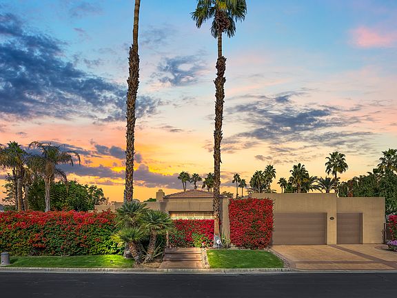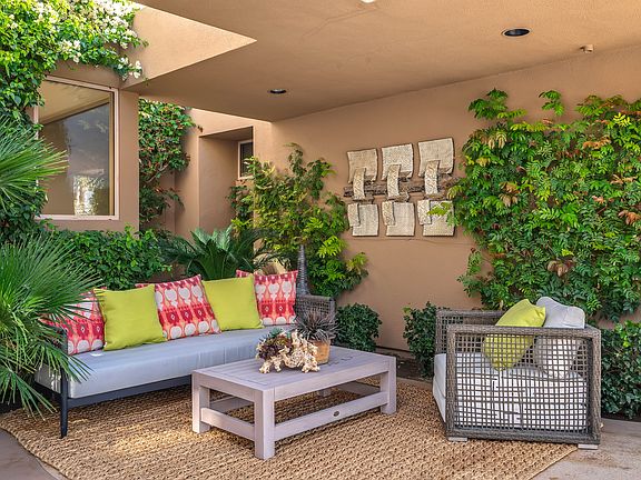 Discover an exceptional mini estate nestled behind the exclusive gates of Painted Cove, where breathtaking mountain views set the stage for luxury living. This meticulously designed home features 4 spacious bedrooms and 4.5 elegant bathrooms, including a charming detached casita--perfect for guests seeking privacy. Step inside to experience soaring ceilings and expansive sliding glass doors that invite an abundance of sunlight--creating a warm and welcoming atmosphere. Each ensuite bedroom offers private patio access, seamlessly joining indoor and outdoor spaces, and leading to a tranquil pool and spa surrounded by lush landscaping. The primary suite is a sanctuary in itself, showcasing an oversized bathroom and a generous walk-in closet, all while boasting stunning views of the pool and majestic mountains. A large, open-concept kitchen flows into the living areas, complemented by a private laundry room, a pantry, and a 3-car garage that provides generous storage. With every detail thoughtfully curated for both design and functionality, this home exudes a zen-like ambiance that fosters peaceful living amidst the beauty of the desert. Offered designer-furnished, this home features tantalizing custom artwork that enhances its sophisticated charm. Located conveniently close to shopping and dining in La Quinta, the Polo grounds, and just a short drive to the vibrant Palm Desert and Indian Wells, this property exemplifies the pinnacle of luxury living.