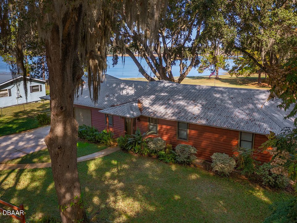 Own your slice of lakefront paradise on Lake Geneva in this charming, move-in-ready 3BR home. Step inside to beautiful Red Oak wood floors and a spacious kitchen flowing to a formal dining room. Enjoy lake breezes from the 25-ft screened porch overlooking lush lawn and a stunning 66-year-old oak tree. A wide hallway with built-in bookshelf offers space for a reading nook or art display. The primary bedroom features a thoughtfully designed walk-in closet. Additional spaces include an office/craft room, full laundry room with newer washer/dryer, and a two-car garage with storage. Outside you'll find a shed and a powered carport with tie-down for a boat or camper. Situated on 0.32 acres with 100 ft of private waterfront. Enjoy low-maintenance living with a new septic system, well equipment in garage, metal roof, and well-kept appliances. Just 25 minutes to Gainesville with easy access to major roads. Come tour this beautiful lakefront home!