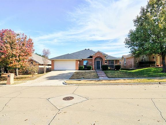 Gracious and meticulously maintained home boasts tasteful updates throughout. Some highlighted features include: New tile floors (wood look, gray), Replacement of HVAC system (heat pump) with warranty in place, Roof and gutter replacement, split bedroom system, skylight & island in the kitchen, high vaulted ceilings, outdoor blinds in the covered patio, sprinkler system, Stone platform for the outdoor grill, Bay windows in master and formal living room, Ceiling fans throughout along with a Nest thermostat for high efficiency. Master bedroom constitutes of dual closets and an en suite bathroom with a separate shower and a garden tub. Walking distance to Don Misenhimer park with NO HOA dues to pay. Mansfield ISD.