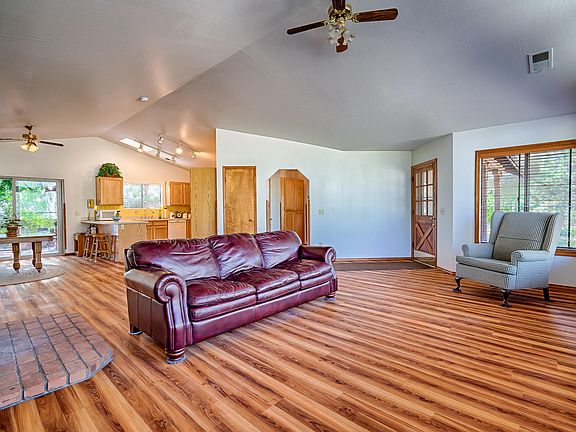 Beautifully maintained single level 3 bd, 2 ba home with vaulting and lots of light. A lovely gourmet kitchen includes Corian counters and opens to a fabulous great room and cozy wood stove. Old growth pines, aspens, spruce, oak shrubs and apple trees are accented with gorgeous landscaping and a wildlife habitat designation from the National Wildlife Federation. Enjoy a beautiful Flagstone patio with a cool pergola and pond. BRING YOUR HORSE OF COURSE! This fully fenced 2.35 acres is set up for all of your equestrian needs including a 24' x 36' barn, tack room, a 12' x 24' open metal shed and another nice size barn with rustic barn wood exterior. There is also a fenced vegetable garden area with raised beds along with several other wood storage sheds, an aviary, windmill and so much more!