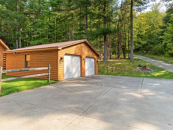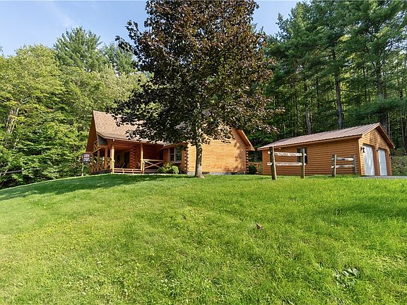 Recently updated and ready for you, this welcoming and warm log home combines the best of secluded country living with easy access to everything. As you enter, the soaring ceiling of the great room invites you to relax and enjoy, with seamless flow to the deck, the front porch or the updated kitchen. The primary suite is generously sized with a private balcony to sit and enjoy the peace and quiet - or the gentle sounds of a babbling brook. Freshly updated with new lighting and switches throughout, this home is as stylish as it is functional. The expansive basement offers incredible potential for customization. The grand front yard greets you and carries you around to the tranquil views throughout the 10-acre property, ideal for hunting or hiking.