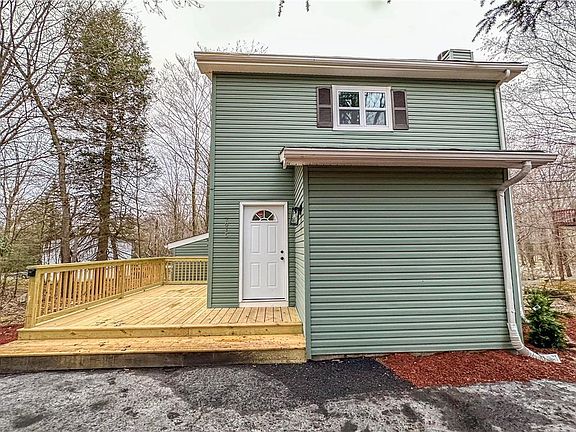 Total renovation, top to bottom. New, New, New. Nothing to do but move in. This lovely home in amenity filled A Pocono Country Place offers brick Fireplace in the Living Room with walk out to deck. Gorgeous New Kitchen, Modern light fixtures, and LVT floors throughout. Private Master Bedroom and Master Bathroom. New Windows, New Roof and beautiful landscaping. Special features include split units for AC and heat and Airbnb friendly community. Quiet area with private back area. Convenient to Route 380, route 80, Shopping, and all Pocono Attractions. Call to schedule your showing today.
