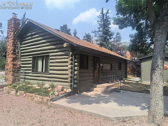 WOW! An amazing property, exceptionally well kept charming log home in beautiful Cascade!!! Located on the sunnyy side, a usable .24 of acre, all fenced, super sized 1200 sf - 4 car heated garage. Both garage and shed have 220 and are insulated. Recently painted last year. This property has a front yard and the back yard area is so private with some large bushes and a few trees, you will love the seclusion and mountain views. You will feel so at home when you enter this cozy cabin. Spacious dining area and super great room with woodstove, beamed ceiling, knotty pine walls, it's where you will all gather. You'll love the updated galley kitchen with granite counter tops, large window over the sink, pull out drawers in the cabinets, also the updated bathroom with closet storage, newer shower insert and vanity. Home has 2 bedrooms, the washer/dryer located in 2nd bedroom. PLEASE NOTE this is the Cascade Metro Water District, where owners pay $/month to the district along with added water bill. There is a little cellar where the hot water heater is. You enter from outside, so you can some extra cooler storage here. This location allows you to walk to the post office and to a nearby restaurant. Manitou Springs and Colorado Springs are 10 minutes away. Entrance to the North Pole and Pikes Peak are 5 minutes. It's the best of both, you get that peaceful mountain feeling and yet minutes to the city and shopping. Woodland Park is just 10 minutes west for more shopping, restaurants and events. Come take a look! It's a little piece of heaven!!