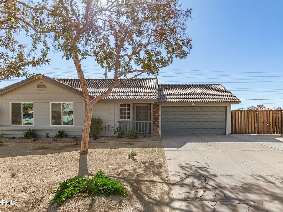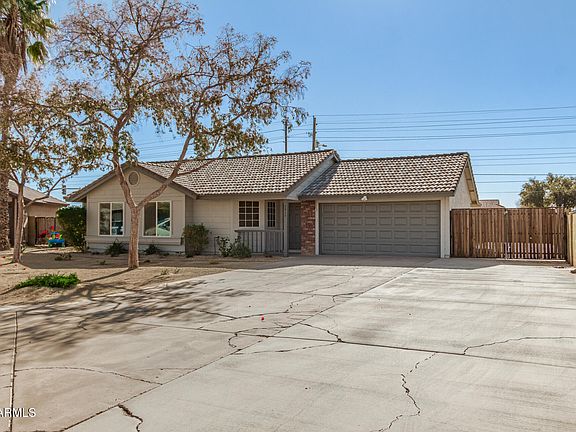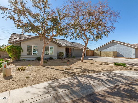 The search is finally over! Explore this lovely 3-bed, 2-bath home in Peoria! Situated on a peaceful cul-de-sac, it offers a 2-car garage, RV gate, and low-maintenance front yard. From the moment you enter, you will immediately notice the inviting living room featuring tile flooring, neutral palette throughout, and vaulted ceilings that add to the airy feel. Natural light floods in through sliding glass doors, blending the indoor with the outdoor living. The eat-in kitchen provides plenty of cabinets and stainless steel appliances. The primary bedroom includes a private bathroom with dual sinks and a shower & tub combination. With its covered patio, the spacious backyard is the perfect spot for hosting fun get-togethers or simply unwinding. This rare find will sell fast! Hurry!