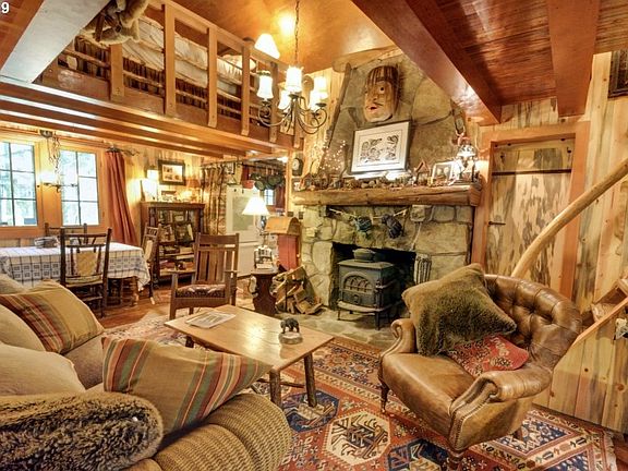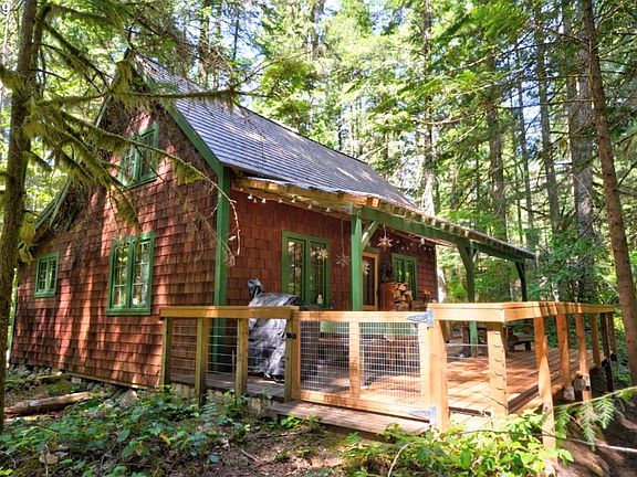 Quintessential 1925 ski cabin on Camp Creek in the National Forest near Government Camp on leased land. True Mt. Hood ambiance with a stone fireplace, wood floors, paned wood windows, and cozy double sleeping loft upstairs. Open floor plan with vaulted ceilings. Charming kitchen and updated bathroom. Out the back, a deck, partially covered with views of the pristine forest. One of the only plowed roads in winter. 7 min. to skiing.