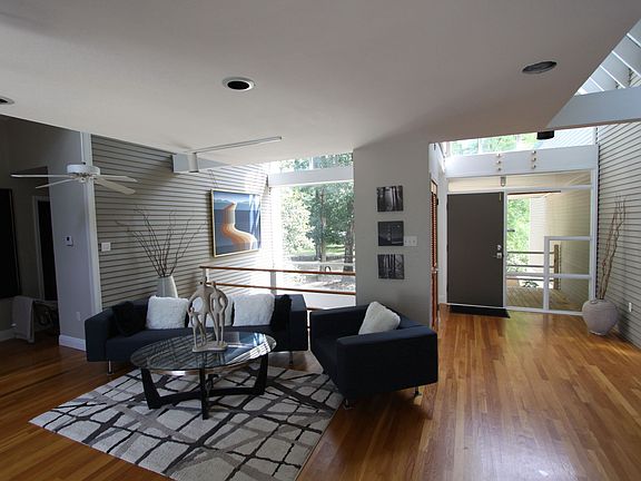 Beautiful one of a kind architecturally designed riverfront contemporary home on high bluff, overlooking private white sugar sand beach, on sand and gravel bottom artesian spring fed river, on 5 acre park like lot. Must be seen to be appreciated. Optional adjacent 5 acre lot available. Recently 5 undeveloped acres next to home sold for $132K. Each bedroom has an outside balcony. Large deck overlooking beach. Closet size electrical mechanical dumb waiter to bring all your supplies to the main level from your 3 covered parking spaces. Also with covered entry through ground level atrium or to 2nd level front door. Large master suite with vaulted ceiling, 2 person jetted soaking tub, steam shower and large marble vessel sink. White oak 3/4" tongue and groove flooring throughout. Ceramic tile in kitchen and dining room. Low utility costs, highly efficient geothermal air conditioning system. Recently renovated. Excellent quality water from private well. Gas stove, dryer and water heater. Private sanctuary only 45 minutes from the New Orleans French Quarter, and 10 minutes from downtown Covington. Occupied by original owners since new, never rented. Truly a turnkey home, ready for immediate occupancy. Viking appliance upgrade, New Viking Range and Dishwasher, installed recently. FSBO 9859664190 Call any time.
