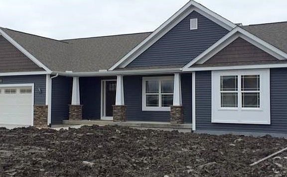 Beautiful Craftsman Style Ranch on a treed .92 acre lot with all city services! This proposed new construction home features: 3 bedrooms, 2 baths, a large open floorplan, premium white trim & solid doors throughout. The spacious master suite has a large walk-in closet & master bath. The master bath features a walk-in tile shower with dual granite top vanities. The kitchen and living rooms have vaulted ceilings making the space feel grand and airy. The kitchen has a walk-in pantry, granite counter tops and cherry cabinets (with lifetime warranty). This home also has 2x6 wall construction, 9ft insulated, poured foundation walls in basement with waterproofing warranty, LED lighting throughout & over 800 sq. ft of ceramic tile. Exterior features include: a large front porch with stone and columns, premium siding, stone exterior & a rear 12 x16 concrete patio. Appliance and landscaping allowance is included. Prior to construction some selections can be selected. Not in Flood Zone