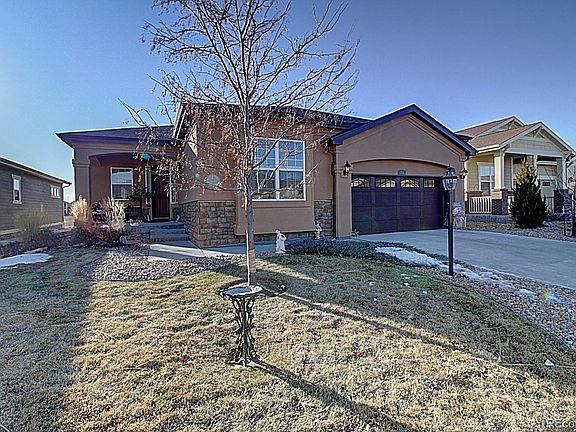 Golf Cart Crossing! 55+ living at its finest! Stunning ranch-style home at sought-after Heritage at Todd Creek! New fully finished basement with bar, TV area, with surround sound and more. 3 Bedroom, 3 1/2 Bathroom home offers a sprawling open floor plan with incredible natural light, and unbeatable views of Todd Creek Golf Course! Main level has private Study, formal Dining Room, Family Room with cozy gas fireplace, and gourmet eat-in Kitchen. Kitchen features granite-slab countertops, stainless-steel appliances with double ovens, and coffee-serving station/butlers pantry. Each bedroom occupies its own wing of the home--both en suite! Spacious Master features a private 5-piece with deep soak tub and walk-in closet. Wake up to golf course view! Enjoy Todd Creek Golf Club breathtaking Mountain View, indoor/outdoor pool, tennis courts, fitness center, craft room, and restaurant. Don't miss this one! Call now for your private tour! Unfinished basement is full footprint of main level and ready to accommodate your personal needs!