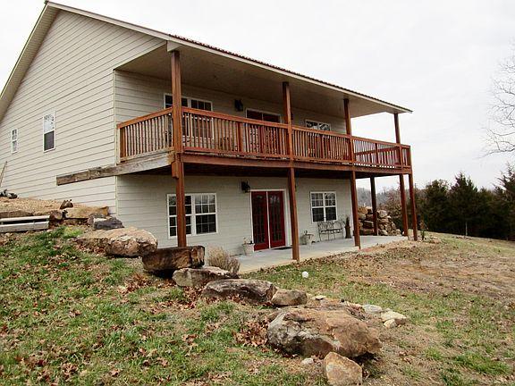 BREATHTAKING VIEW , COMPLETELY PRIVATE 35 acre property only a couple of miles to Bull Shoals Lake. Home is open concept with wrap around porch with French doors, overlooking fantastic view of property. The full basement is semi-finished with another bedroom, living area and huge bathroom with jetted tub, and another French door overlooking the fabulous view! There are two established hay fields for horses or just to enjoy the beauty of space. And, has absolutely huge 30 x 60 shop building with 3 extra large doors for RV, boats, tractors, or toys for quick trips to the lake. located just a couple minutes away! Plus , there's an outdoor wood furnace - And it's wired for generator future use and RV hookup. This property has a lot to offer, come and check it out.