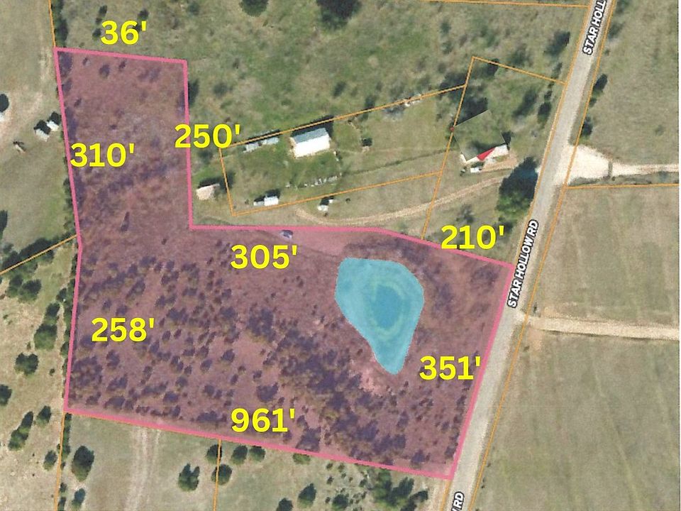 Property for sale is approximately 4.88 acres of original tract. APN PIN R000093519. Electric is available at the street; water well and septic will be needed. No HOA. No flood plain. The subject property is a five (5) acres section of 9.071 acres of 7916 Star Hollow Road, Lipan TX 76462 as described as (ACRES: 9.071 SUBD: OLD WD RANCH PH I SEC B TRACT: PT 10). These dimensions are not exact. The surveying company can change the dimensions to make the section five (5) acres +- 0.2 acres. Buyer to purchase a new survey. Seller does not have any deed information. Information provided is deemed reliable but is not guaranteed and should be independently verified. Vacant land; no sign on property. No survey available; buyer is to pay for a survey if they require one. Cash sale. Seller to use their preferred Title company. All zoning, building, and-or development questions to be directed to City of Lipan and-or Hood County. Buyer to do due diligence before making an offer. Owner Occupied.