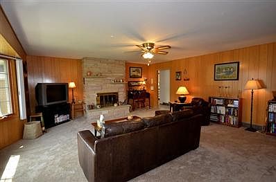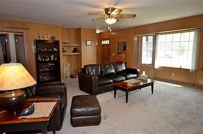 Lovely brick ranch located on a double lot at the end of a dead-end street. Peaceful country-like setting. Warm and inviting. HUGE room sizes! The living room features a stone fireplace and enough room for the largest furniture arrangements. Views are picture-perfect! Large country style eat in kitchen. Pantry is ideal for stocking up!Full basement and an attached 2+ car garage. Walk to beach or enjoy your large yard