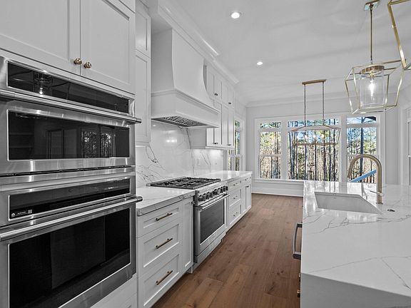 Custom Built by Wardson Construction on a POOL ACCOMMODATING LOT! Backs to Permanent Wooded Buffer! Offering 1st floor Owner's Suite, Guest Suite & Private Study! 3 Car Garage! Wide Plank Hardwoods Thru Main Living & Owner's Suite! Upgraded Trim & Lighting Throughout! Kitchen: Features Quartz Ctops, Custom Center Island w/Flush Quartz Breakfast Bar & Designer Pendants, Custom Painted Cabinets to Ceiling, SS Appliance Package Incl Gas Cooktop & Wall Oven & Corner Walk in Pantry! Owner'sSuite: w/Tray Ceiling & Triple Window! Owner'sBath: Dual Vanity w/Quartz, Soaker Tub, Tile Surround Shower w/Bench Seat & Sep Walk in Closets! Family Rm: Custom Surround Fireplace w/Mantle & Custom Built ins & 12' Quad Slider to Covered Porch w/Fireplace! 2nd Floor Bonus w/Half Bath & Walk in Closet & Separate Media/Exercise Rm! Tankless Water Heater!