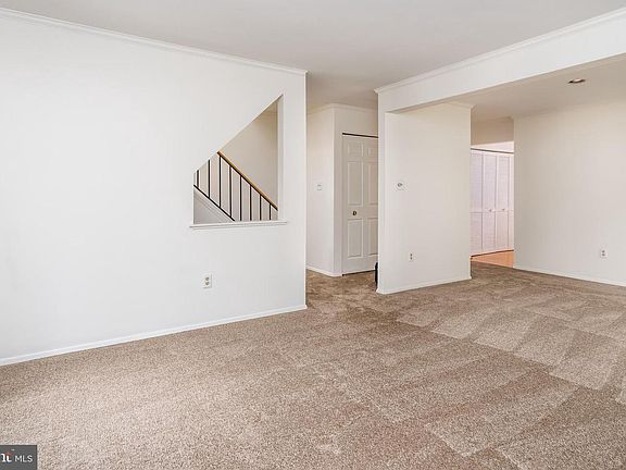 Ideally situated on a cul-de-sac backing to trees in popular Woodland Park this well maintained, updated, end of group is cleaned up & ready for it's new owners! Home boasts a contemporary style floor plan, fresh paint, brand new carpet, & tons of natural light. Kitchen has gleaming wood floors, new stainless steel appliances w/ GAS cooking, breakfast bar & slider that leads to the freshly stained deck over looking the fenced rear yard. Master suite w/ a soaring vaulted ceiling, walk in closet, & private bath. Finished lower level Rec Room w/ walk out level slider to rear brick patio. Efficient GAS heat. Walking distance to sought after Bellow Spring Elementary School. Close to commuter routes, shopping, dining & much more!