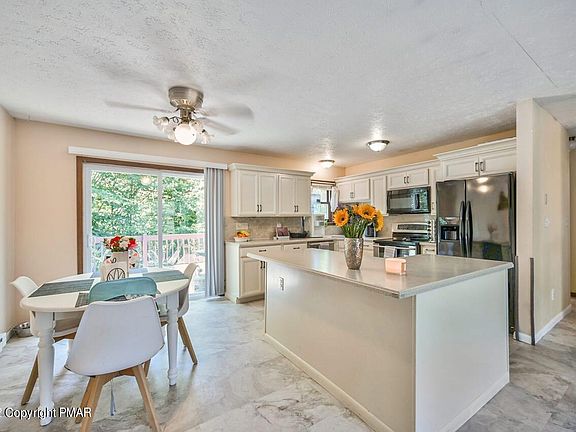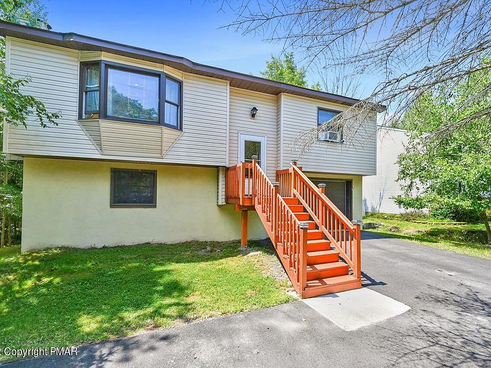 PRICE RESUCED TO SELL!!! Vacation all Year Round In this Recently Remodeled, Upgraded 3 Bedroom 2 Bath Home w/ enough space for everyone. This Lovely home features a BRIGHT & AIRY Living Room and Modern Kitchen that will Not Disappoint! Sliding Doors onto the deck from the Dining area overlooking nothing but nature, Home is ideally situated for privacy, First Floor has two generously sized Bedrooms, Lower level is ideally set up for to work from home with the third bedroom and Office Space, Laundry area Full Bath complete this Move in Ready Home.. public water/sewer, & in an Amenity Packed Community close to Major Highways, Bus Stop, and Pocono Attractions!