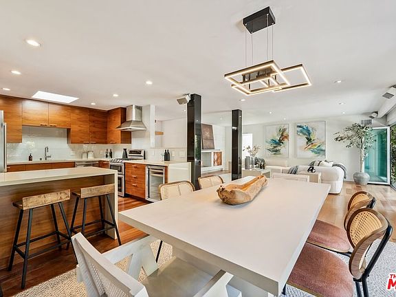 Presenting this stunning modern Playa Del Rey home. The main floor greets you with an elegant foyer featuring soaring ceilings, slate flooring, and striking mirrored accents. The living room showcases a stylish tiled fireplace, while the dining area and kitchen boast granite countertops and a chic breakfast bar. Bifold sliding doors in the living and dining rooms open to two distinct outdoor areas, seamlessly blending indoor and outdoor living perfect for hosting or enjoying meals al fresco. One outdoor space includes an in-ground spa, accessible via hallway sliders, adding a touch of relaxation to the home. The layout provides easy access to bedrooms on both the upper and lower levels. The first downstairs bedroom acts like a dual primary suite and opens to a private deck and yard via sliding glass doors and includes an en-suite bathroom with a luxurious soaking tub and separate shower. The second bedroom features a sliding door with views of the yard. The third bedroom has a gorgeous spa-like bathroom and access to the yard as well. For ultimate convenience, smart thermostats control the central heating and air for comfort and there are Sonos speakers throughout. The upstairs master suite is a true retreat, featuring a spa-like bathroom that was recently redone. This property is truly one of a kind!