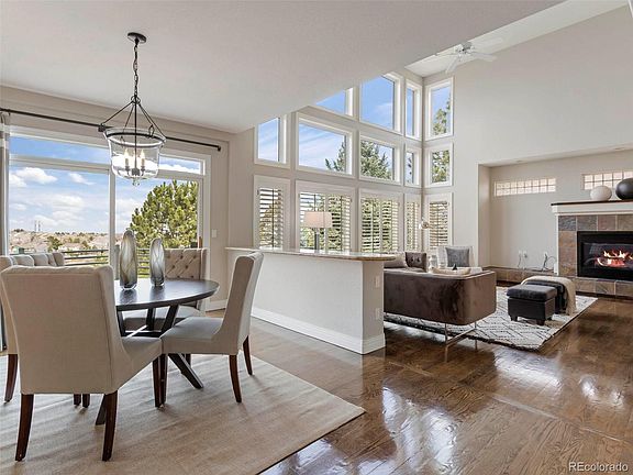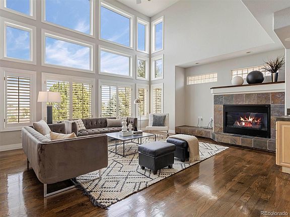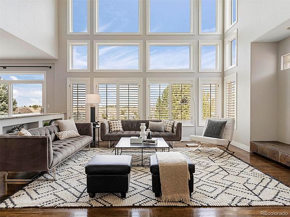 Located in the coveted Glen Oaks neighborhood and backing to the 3rd hole of The Ridge at Castle Pines golf course, this incredible 5 bed | 5 bath mountain modern home features an open flow plan that floods every room with natural light. The main floor lays out beautifully, offering a huge great room with gas fireplace, wet bar, and double-height window wall overlooking the fairway. The kitchen, with oversized island, generous cabinet space, double ovens, gas cooktop, walk-in pantry, large breakfast nook, and a spacious deck helps make the indoor | outdoor lifestyle you've always wanted an everyday reality. The main level also offers a formal dining room, office, living room or 2nd office, powder room, and laundry room with 2nd staircase access to the upper level. The 3-car garage is optimized for organization. Upstairs you'll find the spacious and inviting owner’s suite featuring a separate sitting area, private upper patio, and golf course views. The primary bathroom includes a glass-faced shower with bench, jetted tub, dual vanities, linen closet, and a large, organized walk-in custom closet with center island. Completing the upper level are 3 large bedrooms, one with a walk-in closet and full en suite bathroom and the other two with organized closets and an updated Jack and Jill bathroom. The lower level features a sizable recreation room with space for a workout or gaming area which sits adjacent to a full kitchen. Sliding doors open to the covered flagstone patio and large back yard - creating an ideal multi-generational living space that's also perfect for hosting and entertaining. The lower level 5th bedroom features an adjacent bathroom. The furnace, air conditioning condensers, water filtration system, and water heater were all replaced between 2018-2021. Offering a wealth of both functional and desirable features, this multi-faceted home allows an immediate opportunity to live your best life in Colorado.