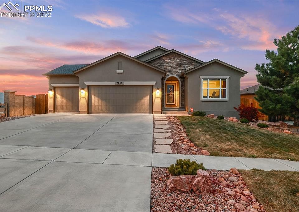 This happy house is poppin'! Seriously though, how many opportunities are out there to have your backyard not only back up to an incredible local park with a wide expanse of green space, but the extended covered composite deck takes in 180 degrees of jaw-dropping views of Pikes Peak and the Front Range. A brand-new furnace and new Bosch kitchen appliances plus lush, low-maintenance landscaping and a stucco exterior mean this wonderful ranch plan is going to be so easy and worry free for you to enjoy! And the home is loaded with extras including a pristine new whirlpool spa on the lower patio, an infrared sauna in the basement, fitness equipment (weight machine), washer and dryer, built-in sound system, energy-efficient Hunter Douglas window treatments and so much more. The main-floor master has an ensuite bath and walk-in closet, and there is an additional secondary bedroom with an adjacent full bath also on the main floor. The kitchen has beautiful warm-wood cabinetry and plenty of counter space to prep food for a crowd. Newer carpet throughout the main floor means you can just unpack your things and relax and enjoy - that is, until your friends line up for your parties, because this home is made to entertain crowds of friends and family. Downstairs, residents and guest will love the bar areas, one a wet bar/mini kitchen, plus a service bar adjacent to the lower patio, for convenient access to the private whirlpool spa, grilling area and back yard. The basement level features a walk-out plus two more big bedrooms and a full bath, plus a HUGE wraparound storage room, where you'll find the infrared sauna, perfect for rejuvenating after a day at work or another weekend party. This home has been excellently maintained and deeply loved. It is full of joy and happy memories, and has hosted many gatherings of family and friends. You can feel the happy memories and years of blessings that have been enjoyed here as soon as you walk in the door. Now it's your turn.