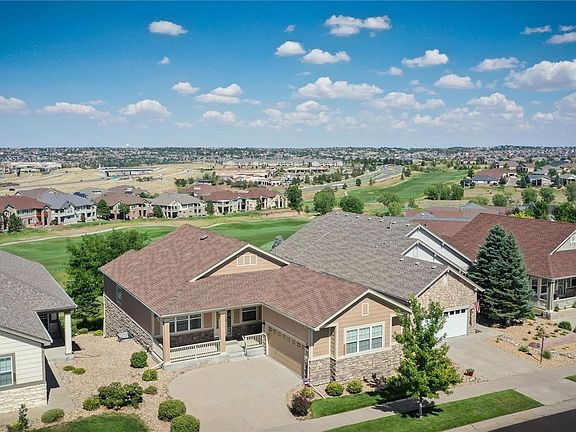 Welcome to this remarkable model quality home in the prestigious Heritage Eagle Bend 55+ active lifestyle community of Aurora, Colorado. Here you will find a world class resort-like living community with a gated entry, championship golf course, spectacularly remodeled community center that includes indoor and outdoor pools, workout center, restaurant, tennis and pickle ball courts and a plethora of community events. Your opportunity to join this incredible community awaits with this beautiful ranch style, low maintenance home, perfectly perched on a premium over-sized walk-out lot with spectacular views of the 13th Tee Box and lush fairway. Whether you call this home for six months or year round, this home has it all to include an open inviting floor plan that is flooded with natural light through the large windows, dramatic architectural features, and soaring ceilings. The spacious floor plan features a spacious kitchen with extended counters and tile floors. The perfectly located dining area is an amazing space for everyday dining or hosting family and friends. The large family room is spectacular. You will love this inviting space that features an elegant tile faced fireplace and over-sized windows that perfectly frame the outdoor living space and spectacular views of the golf course. The private and relaxful master suite offers a luxurious en suite with a 5 piece bathroom collection that includes a large soaking tub, shower enclosure, double vanity and a walk-in closet. The main floor is complete with a second flex room, guest bathroom and convenient laundry area. The fully finished walkout basement offers a large recreation room, bedroom and full bathroom. The outdoor living area is a must see! Unwind on one of the two over-sized covered decks while enjoying the meticulously maintained yard with mature landscape that offers privacy and beauty. You will love the curved driveway and side-load 2 car garage that offers an elegant courtyard entry. Golf cart parking!