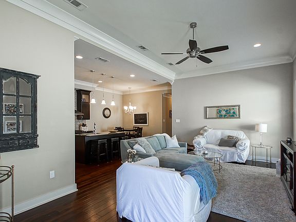 A 3 bedroom 2 bath home with 1661 sq ft in the prestigious gated community of University Villas off Burbank is awaiting its 2nd owner. Enter the inviting foyer to see the dark wood floors that flow throughout most of the home. Truly open concept floor plan that's great for entertaining. Immediately notice the high ceilings, sleek modern crown molding, can lights, and windows that allow the natural light to flow into these space. The kitchen includes slab granite counter tops, full subway tile backsplash, island with bar stool seating, energy efficient stainless steel appliances, gas cooktop range combo,microwave, dish washer & complete with sleek modern hood vent. Rich expresso shaker-style cabinets with plenty of storage plus small butler pantry. Down the hall is access to the master bedroom and its private en-suite bathroom with dual vanities, framed mirrors, Jacuzzi tub & separate shower & a walk-in closet with convenient access door to laundry room. Two additional bedroom and a spacious full bath with linen closet is located across the hall. There is no carpet in this house. Need little outdoor privacy then head out to the back deck space surrounded by privacy wood fence. There is additional green space on the side of the home if you would like to extend the fence. There is an enclosed two car garage with an additional storage nook. Exterioris brick, stucco & hardi plank all low maintenance. Other amenities: blinds, window coverings, full home security system, No flood Insurance required. Located in Flood Zone X. Property did not take on water in August 2016. Common areas maintained by HOA and Community pool & clubhouse is walking distance from this house.