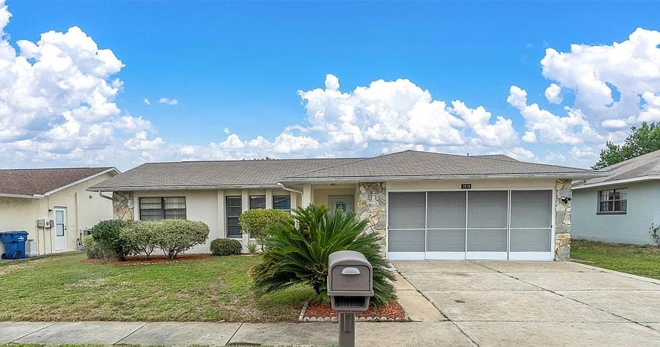 **BACK ON MARKET** It's your lucky day! Buyer's financing plans fell through - This charming home boasts 3 bedrooms, 2 bathrooms, a 2-car garage, an open concept family room, a kitchen with ample space for entertaining, a split floorplan, and a serene owner’s retreat. Neutral-toned updated interior paint and luxury vinyl plank flooring welcome you as you enter the home from the landscaped entrance. Step through the foyer and into the kitchen area that connects to the open-concept family room. The kitchen is complete with a farmhouse basin sink with garbage disposal and updated faucet, butcher block counters, modern stainless-steel appliances, a skylight, and plenty of counter space for food preparation and entertaining, including a beverage nook with extra storage! Just off the kitchen is the family room with sliding doors that allow light to stream in through the Florida room while providing easy access to relax and enjoy the outdoors on the patio and yard with plenty of room for a pool! On one side of this split floorplan, you will find the spacious and serene Owner’s suite featuring a walk-in closet and ensuite bathroom. Adjacent to the kitchen, is the spacious, oversized laundry room with plenty of extra cabinets for storage. On the other side of the home, you will find a formal dining area with sliding doors that connect to the Florida room, 2 additional generously sized bedrooms, and the guest bath. Home features include a NEW AC unit, fresh paint, updated flooring, utility sink in the garage, and updated light fixtures. You can relax and enjoy Florida living in this adorable home centrally located near beaches, shopping, restaurants, parks, the trail system, the airport, golf courses, entertainment, US 19, Suncoast Parkway, State Road 54/Trinity corridor, and so much more. Look for the virtual tour! MUST SEE!