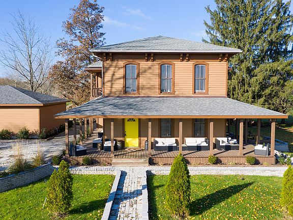 MOTIVATED SELLER! PRICE ADJUSTED!! Beautiful two-story Italianate home located just outside of historic downtown Mount Vernon, Ohio. Romantic wrap around porches and balconies with plenty room for entertaining or a quiet moment to yourself, overlooking two acres with shade trees and two Koi ponds. Stunning foyer, high ceilings, and a beautiful banister staircase. This home has three original fireplaces (decorative), long windows for natural lighting throughout. Four large bedrooms, two full baths with a bonus room off the owner's room for additional seating or nursery. First floor laundry/mud room, formal dining room, and a bonus theatre room with stadium recliner seating, projector, screen, popcorn and gumball machines. Extra arge kitchen, Large oversized three bay garage, work shop.
