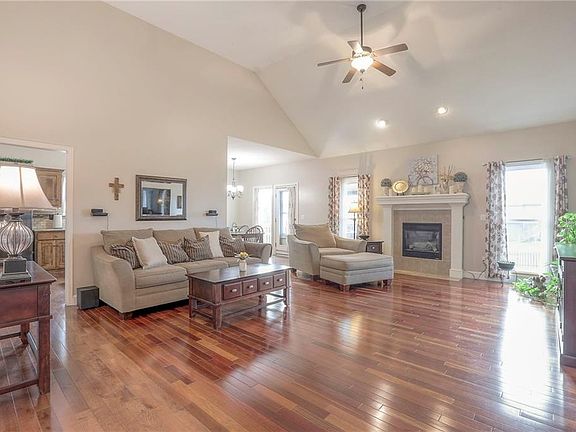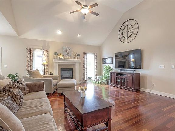 True ranch with a full finished basement, 4 bedrooms, 3 bath with a 5th non conforming bedroom. Beautiful open living room boasts cozy gas fireplace. Kitchen has granite counters, stainless appliances, 2 pantries and eat in bar. From the dining room walk out to the covered deck overlooking the large fenced in yard. Gorgeous cherry wood flooring throughout main level. Master suite offers double vanity, tile shower, linen closet, and walk in closet. Huge lower level offers walk out to the patio, rec room with tile flooring, and family room. 4th bedroom with walk in closet and full bathroom. Plus a 5th non conforming bedroom or a great office. Two storage rooms. Home is on a culdesac.