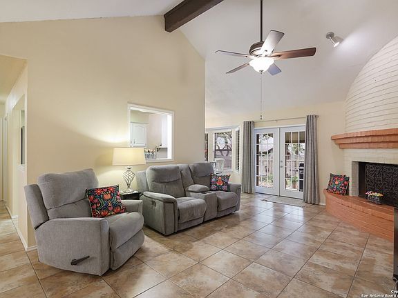 Welcome to this beautifully maintained home in Braun Station West! From the moment you step inside, you'll notice the care and attention to detail that has gone into every aspect of this property. This home boasts updated light fixtures and a spacious floor plan that is perfect for entertaining guests or enjoying quiet evenings at home with family. The living room is filled with natural light and features a brick fireplace, wood beam ceiling and stunning ceramic tile throughout. The kitchen is well-equipped with updated appliances, ample storage, and granite countertops. The 3 bedrooms are generously sized and offer plenty of closet space, making it easy to stay organized and comfortable. The 2 refinished bathtubs feature updated water saving shower heads. The backyard is a true oasis that has been meticulously landscaped and maintained. You'll love spending time outdoors on the patio, surrounded by lush greenery and mature trees. This home will impress! Roof & HVAC are only 5 years old. Water Heater was recently updated.