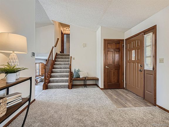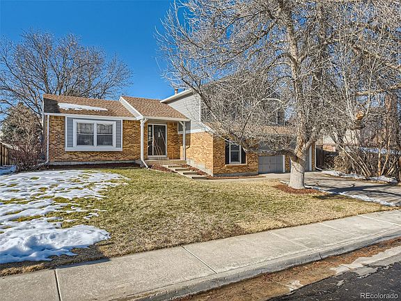 Charming home in popular Southbridge! Room for everyone with 4 bedrooms and 3 bathrooms. Main floor living room is open and welcoming with vaulted ceilings. Sunny eat-in kitchen is spacious and open, and features skylights, and an eating area with floor to ceiling windows. The lower level features a cozy wood-burning fireplace and a glass door directly stepping out to the back patio. A convenient laundry room and half bath are easily accessed near the garage entrance, and there is also a 4th bedroom on the lower level that is perfect for an office. Upstairs is a huge Primary suite, with vaulted ceilings, room for a sitting area, a massive walk-in closet, and a 3/4 bathroom with a double sink vanity. Also upstairs is a full bathroom, and two more bedrooms that have custom closet organizers. Finished basement offers a large flexible space and storage. Plenty of space and storage in the 2 car garage with workbench. Large fenced yard with mature shade tree, perfect for entertaining or family time. Many updates including: Brand new exterior paint with a transferable 6 year warranty, brand new carpet and vinyl plank flooring thoughout, brand new skylights, New furnace in 2020, new garage openers. Amazing location, just minutes to C470, I25, Santa Fe, and Mineral Light Rail Station. Award-winning Littleton Public Schools and walking distance to Heritage High School, Euclid Middle School, Runyon Elementary. Minutes to the Platte Trail, the Highline Canal and two neighborhood Parks. This home is a gem and has so much to offer! Great opportunity to buy in a highly desirable neighborhood!