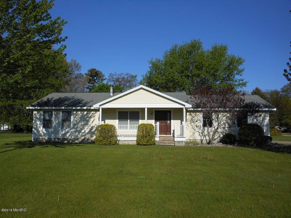 Super exceptional quality-built large ranch in the Village of Rothbury. 3 bedrooms, 2 full baths, full basement, central air conditioning, 2-car attached garage with 8' door, hardwood floors plus ceramic flooring, center island in kitchen, wood-burning fireplace in living room (never used by current owner), main-floor laundry, large master bedroom with private bathroom and 6x4 walk-in closet. Large 2nd bedroom with 5x4 walk-in closet. 3rd bedroom on main floor along with an additional room in fu ll basement. The unfinished basement section would be perfect for a large recreation room - the possibilities are endless! Lots of storage space, cupboards, and cabinets. Backyard shed has electricity plus a workbench area and plenty of room to store your lawn mower and garden equipment too.