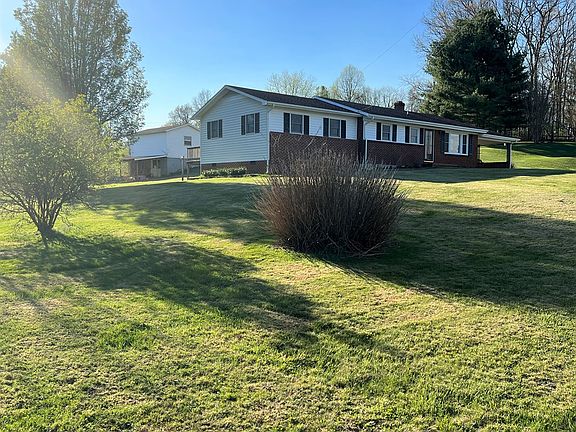 This brick & vinyl sided home has approx.. 1,500 sq. ft. of living area and features a spacious living room w/propane fireplace, kitchen/dining combo w/abundance of cabinets, 3 bedrooms, 2 full baths, utility/storage room and an unfinished basement. Heat pump for heat & air with propane fireplace and wood stove for backup heat, private well & septic system and also public water. Home sits on 1.59 open acres with a beautiful yard, paved drive and an attached carport. Also on this property is a 2 level vinyl sided outbuilding. Great location only minutes from downtown Galax!
