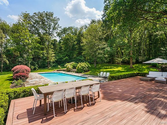Prime Bedford gated estate on over 15 glorious acres of open, level land with spectacular age old specimen trees. This property is totally private, quiet and is less than 3 minutes to town. It was renovated from top to bottom in 2022 with everything new including kitchen and all baths. The house has a perfect floor plan with gracious formal and family spaces for entertaining inside and out. It includes a beautiful wood paneled library/office with a private entrance, dramatic heated glass conservatory, screened porch with plexiglass panels, a heated gunite pool as well as your own squash court! The first floor guest suite is perfectly tucked away and the finished lower level is multi-purpose. Full house generator. Taxes have been grieved and assessment will be reduced significantly.