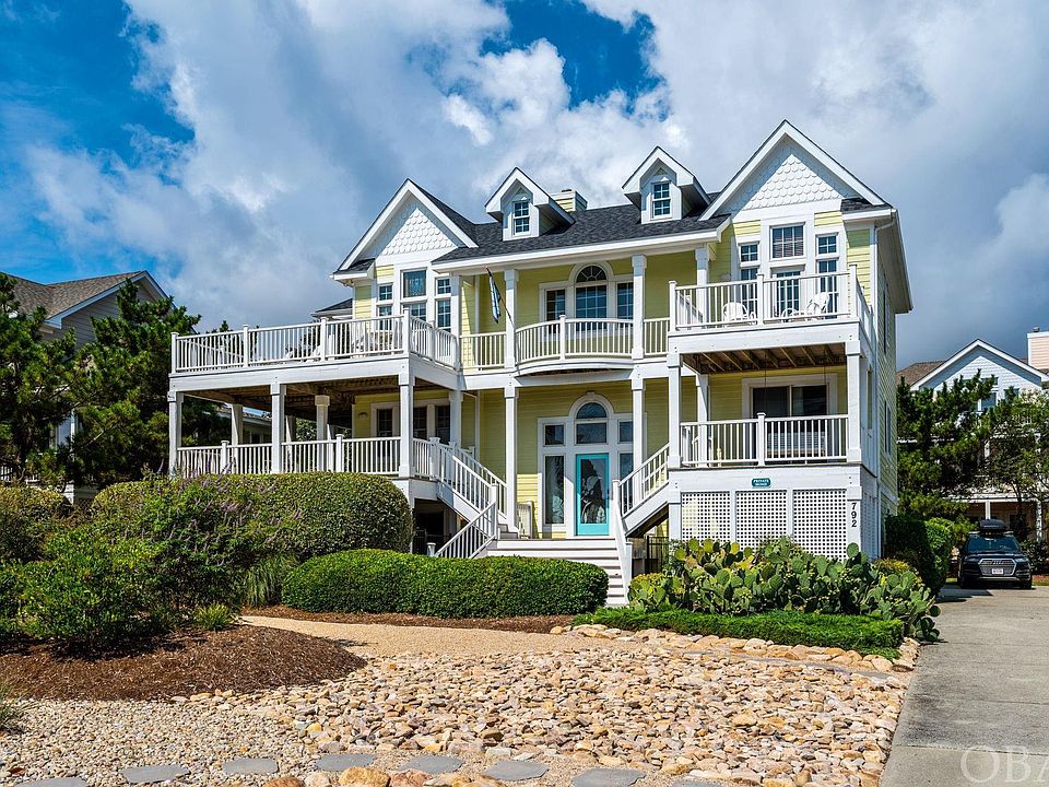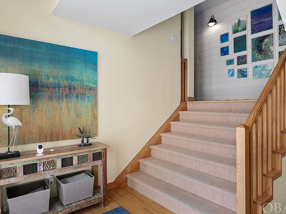 Welcome to your dreamy beachside getaway in the beautiful town of Corolla, NC. This beautifully designed home offers the perfect blend of modern luxury and coastal charm and has been completely redone from top to bottom. As soon as you enter the front door, you are immediately introduced to the quality customization's that this home provides with ship lap accent walls and a beachy blue green color pallet. You’ll find beautiful Hickory hardwood flooring throughout the open concept living, dining and kitchen area, all conveniently located on the top level of the home. The living area features a cozy gas fireplace, ideal for those cooler beach nights, and large windows that allow ample amounts of sunshine to come through. The updated kitchen is a ‘vacationing’ chef's delight, equipped with stainless steel appliances, marble countertops, and plentiful cabinet space. Enjoy preparing delicious meals while socializing with your family and friends at the peninsula or in the adjacent dining area. Offering three master suites plus a bunk room, all bedrooms are generously sized and provide a serene retreat after a day spent on the beach. The top-level primary suite boasts a luxurious en-suite bathroom, complete with a custom tile walk-in shower and dual vanities. The mid-level master suite features a luxurious soaking tub with dual vanities and its own private deck. The second master suite on the mid-level features crisp cool decor, a custom tile shower and a beautiful vanity with ship lap accent wall. This home is designed with entertainment in mind. The ground level features a Lanai with an accordion style sliding glass door that fully opens your own private outdoor living area. Gather your loved ones in the spacious, fully fenced in backyard, where you'll find a private heated saltwater pool, a hot tub, a grilling area and plenty of room to toss a Frisbee or play some corn hole. Whether you're hosting a summer barbecue or simply enjoying a refreshing dip in the pool, this backyard oasis is perfect for creating family beach memories that you will cherish for a lifetime. ADDITIONAL FEATURES for this home include; an Elevator, a mid-level den (with real leather Hide-A-Bed sofa) that could be converted to or used as a 5th bedroom, a ground level game/media room, Trex decking + composite handrails, custom tile showers, a Fortified Roof installed in 2020, a new hot water heater installed in 2022, regularly serviced HVAC systems, exterior painted in 2022, siding/window/door replacements, etc. This home has not been used as a rental in over ten years. Ask to see the list of Updates & Ages and the list of Bonus Features for this extraordinary home! Located in Buck Island, Corolla’s most prestigious private, gated, oceanfront community, this home is just a short walk or golf cart ride to the beach and offers the ultimate coastal lifestyle. Corolla is renowned for its charming shops, delicious local cuisine, and a wealth of outdoor activities. Explore the winding nature trails, go kayaking in the Currituck Sound, or visit the historic Currituck Beach Lighthouse and Whalehead Club. Don't miss out on the opportunity to own this upgraded Buck Island home in the heart of Corolla. Schedule your tour today and make this beachside retreat your very own! To view the 3D tour copy and paste the following link into your browser: https://unbranded.youriguide.com/792_apollo_rd_corolla_nc/