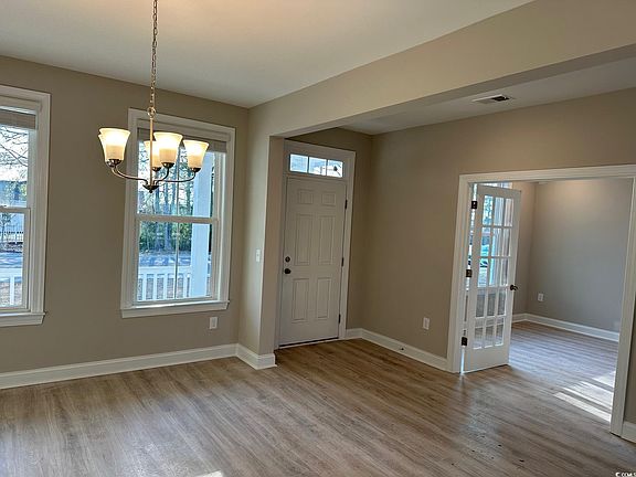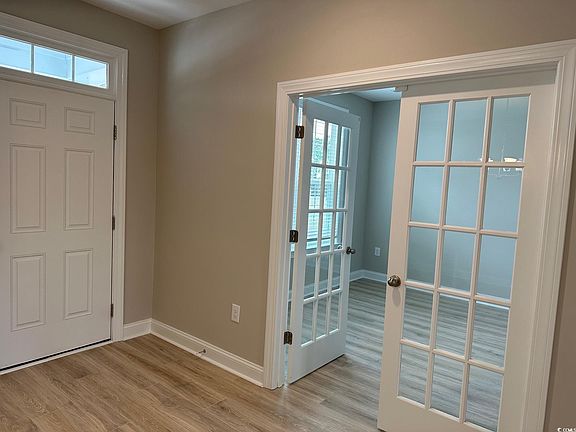 This Ivey home boasts 3 bedrooms, 2.5 baths, a Study with French doors, a covered porch, and a 3-car garage. The generous foyer with a transom window opens to a study on one side and the formal dining room on the other side. The dining room is open to the kitchen via a butler's pantry featuring upper and lower cabinets and a walk-in pantry with an icicle glass door and wooden shelves. The gourmet kitchen features Level 2 4x12 undulated backsplash tile, Greyhound cabinets with crown molding, glass mullions, roll out shelves, a waste basket drawer and soft close doors and drawers, Whirlpool stainless steel appliances (exhaust hood with direct vent, wall oven, wall microwave, natural gas cooktop, and dishwasher), a Kohler under mount apron cast iron sink, and under cabinet lights. Level 3 Rushmore Quartz countertops pair beautifully with the Greyhound cabinets. The first-floor Primary bedroom boasts a huge walk-in tile shower, double vanity, water closet, and 2 large walk-in closets. Bedrooms 2 and 3 are privately located upstairs with a loft that overlooks the great room. This well-appointed home also features faux wood window blinds, Progress Light fixtures, Moen brushed nickel plumbing fixtures, Sherwin Williams wall paint in Agreeable Gray, a designer trim package, a floor outlet, gutters, additional LED Puck lights in the great room, primary bedroom and study, attic storage over the garage with pull down stairs, open rail wood balusters, oak tread stairs, brick thresholds at each exterior door, a natural gas tankless Rinnai Water Heater, and more. 100% Energy Star Certified and EPA Indoor AirPlus Qualified with the complete Tyvek house wrap system, spray foam insulation, and Aeroseal/Aerobarrier which means improved energy efficiency and indoor air quality to give you a healthier, and more comfortable home with less pests, less moisture, less air loss, and a lower utility cost. A premier location between Myrtle Beach and Murrells Inlet, just 2.5 miles to the beach and a golf cart ride to several shopping and dining venues. Community amenities include a pool, clubhouse, and exercise room.