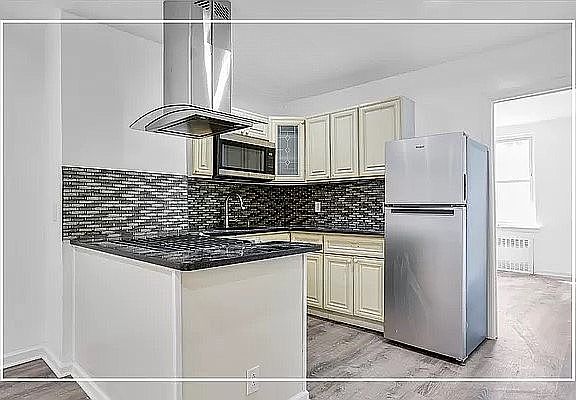 Welcome to this stunning fully renovated 2-bedroom 1 bathroom apartment. This spacious apartment features plywood floors, high ceilings, and a private backyard! The kitchen is fully equipped with custom cabinets Gas stove, stainless-steel appliances, and microwave. All the fixtures and bathroom appliances are brand new featuring a shower tub, cabinet space between the medicine cabinet and sink vanity.