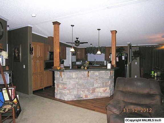 Centrally located large 3-bedroom, 2-bath manufactured home sitting on 2.9 acres. Convenient to Decatur and Moulton. Minutes from restaurants and stores. Double windows and thermal curtains throughout most of the home help with the heating and cooling bills. Storage building with remain with the property.