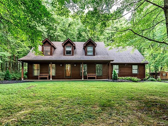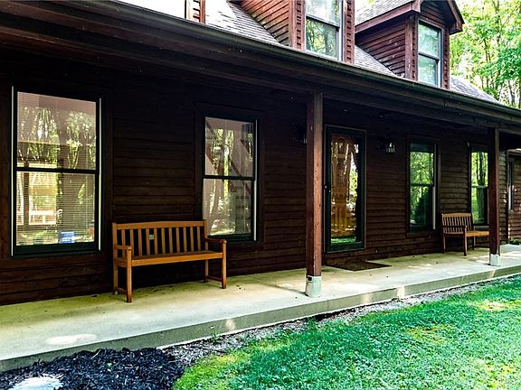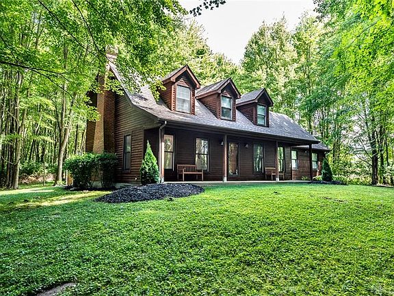 Beautiful move in ready home on 5+ acre private wooded lot w/updates galore! Newer Hvac! Huge front porch w/view of woods! New flooring & fresh paint thru-out home, completely updated baths & living room w/high ceilings & fireplace that opens up to completely updated kitchen w/quartz c-tops & new appliances! First floor master bedroom! Loft area & 2 more spacious bedrooms on second floor. Freshly painted deck and patio area overlooks huge wooded backyard w/storage shed. Attached 2.5 car garage!