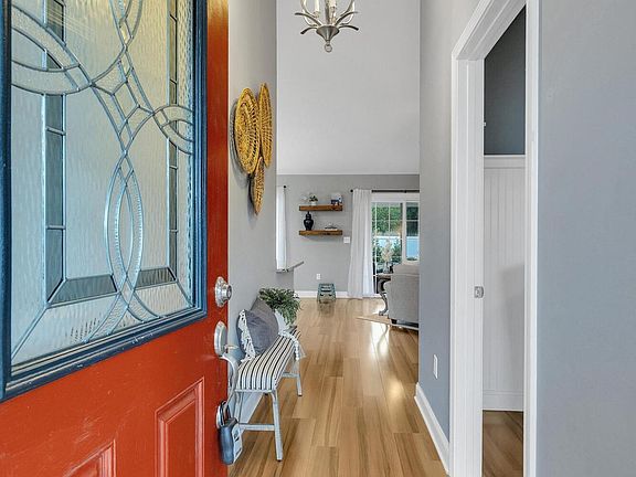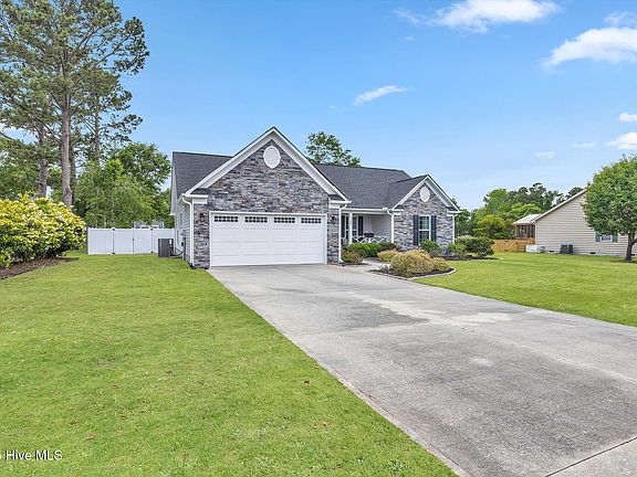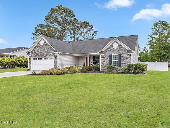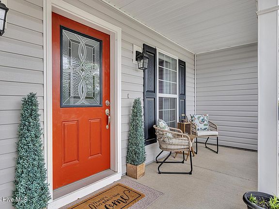 Ideally located just a quarter-mile stroll from the serene Intracoastal Waterway and nestled within the sought-after Topsail School District, this immaculately maintained home offers the perfect blend of comfort, style, and functionality. Thoughtfully designed with 3 bedrooms, 2 bathrooms, and a versatile flex space, the home includes a dedicated office just off the entrance—complete with elegant French doors for privacy and natural light. Throughout the home, you'll find standout features such as granite countertops, stainless steel appliances, updated flooring, and charming shiplap accents that add warmth and character. The open-concept layout flows seamlessly into a light-filled living space with vaulted ceilings and tranquil outdoor views. Enjoy peaceful mornings on the screened-in porch, or entertain in the fully fenced backyard with beautiful gardens and garden shed. This home also comes fully equipped with a washer and dryer, along with mounted TVs, making it truly move-in ready. This is more than a home—it's a lifestyle.